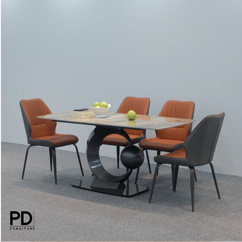 Bàn Ăn Mặt Đá Ceramic Nhập Khẩu, Chân Moon Inox Cao Cấp