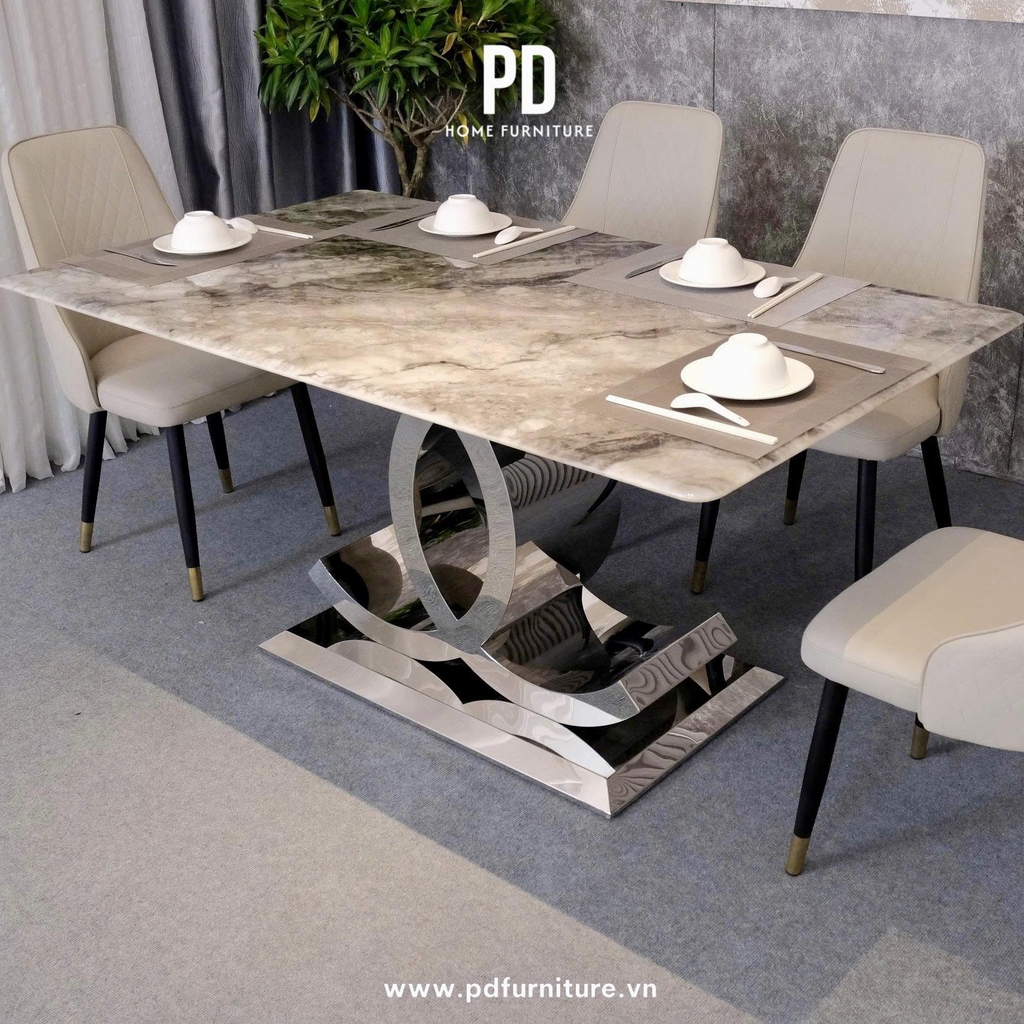 - Chân bàn: Cao 75cm . Chất liệu: Inox 304, mạ PVD chống rỉ sét