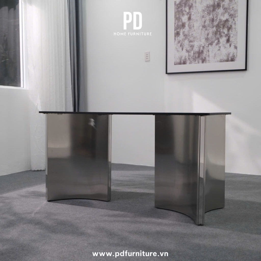 Chân bàn T-149 được chế tác từ inox 304 mạ PVD, phù hợp cho bàn ăn gia đình và không gian nội thất hiện đại. Kết cấu ổn định, khả năng chống oxy hóa cao giúp sản phẩm bền đẹp theo thời gian, dễ kết hợp với mặt đá hoặc mặt gỗ.
