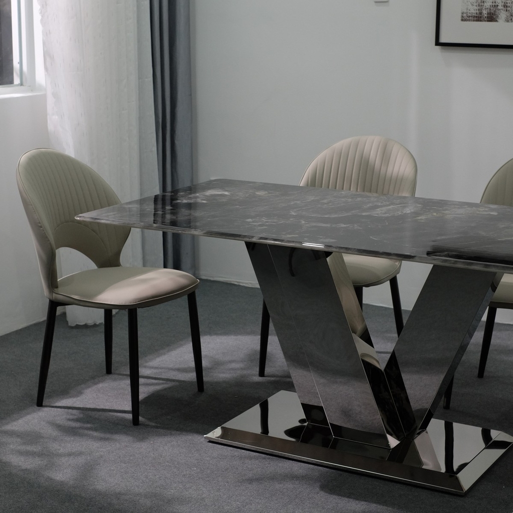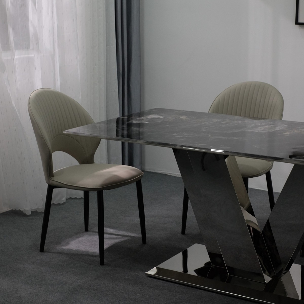 Ghế Ăn Fin Nhập Khẩu nguyên chiếc Bọc Da Pu, Chân Sắt sơn đen lì tĩnh điện. Phần lưng và mặt ghế bọc da mang lại cảm giác êm ái cho người ngồi. Đặc biệt nệm ghế dày dặn kết hợp với phần lưng ôm trọn tạo sự thoải mái khi ngồi lâu.