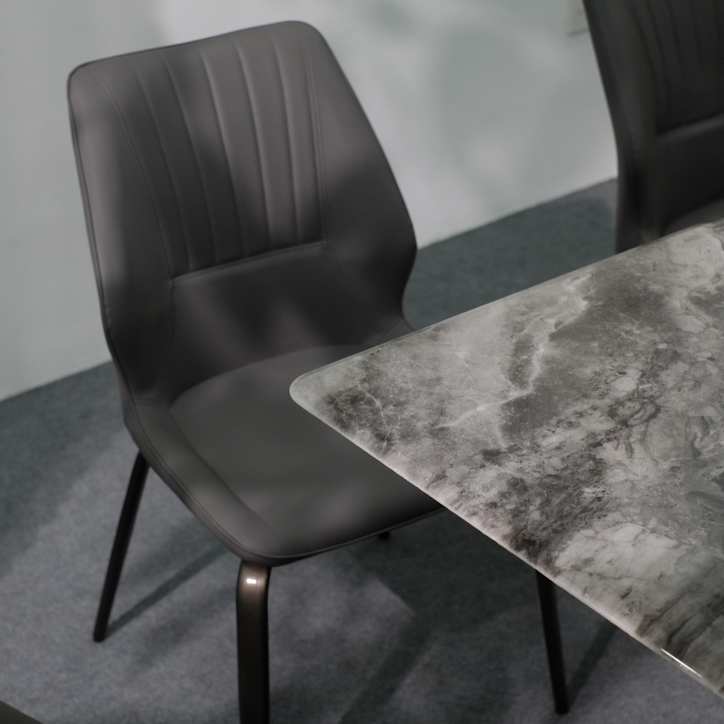 Ghế Ăn Lux Nhập Khẩu nguyên chiếc Bọc Da Pu, Chân Sắt sơn đen lì tĩnh điện. Phần lưng và mặt ghế bọc da mang lại cảm giác êm ái cho người ngồi. Đặc biệt nệm ghế dày dặn kết hợp với phần lưng ôm trọn tạo sự thoải mái khi ngồi lâu.